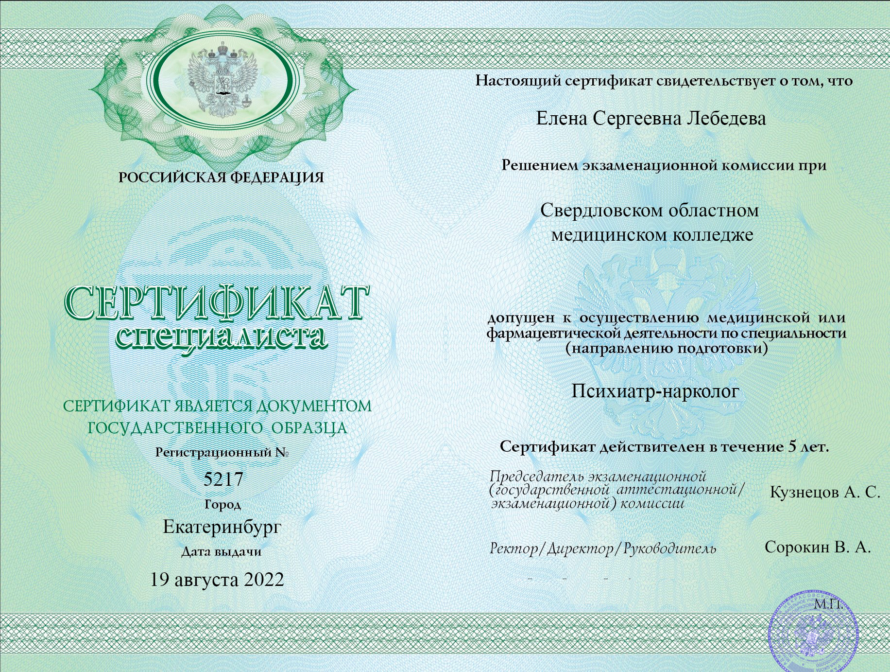 Елена Сергеевна Лебедева врач нарколог клиники доктора Стукаловой в Рубежном